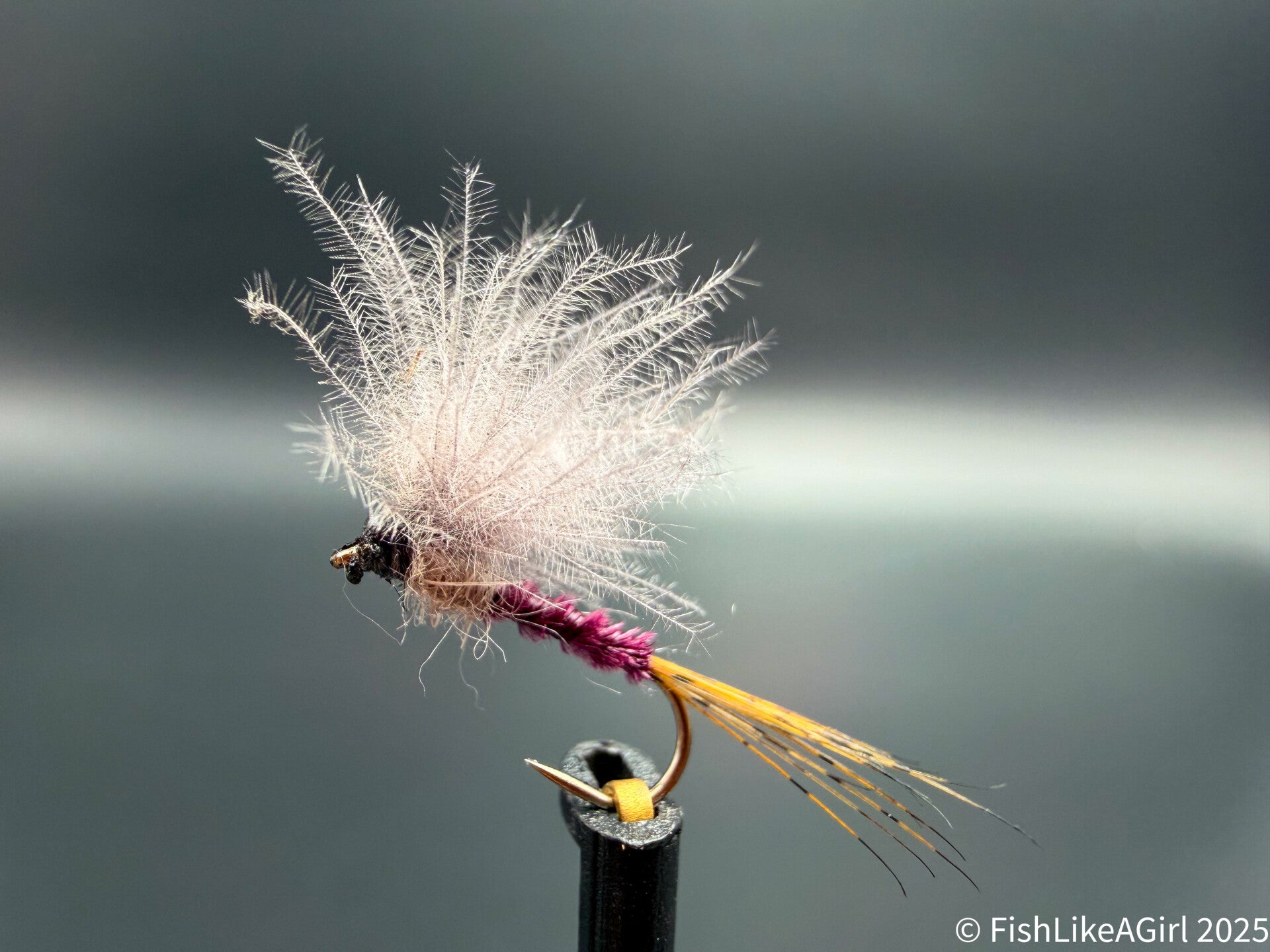 L’aile en CDC clair, légère et aérienne, offre une excellente flottabilité tout en conservant une posture basse sur le film de l’eau. Le hackle souple et bien réparti stabilise la dérive et apporte une animation naturelle, visible uniquement de près — exactement ce que recherchent les poissons éduqués. Les cerques discrets allongent la silhouette et renforcent le réalisme.