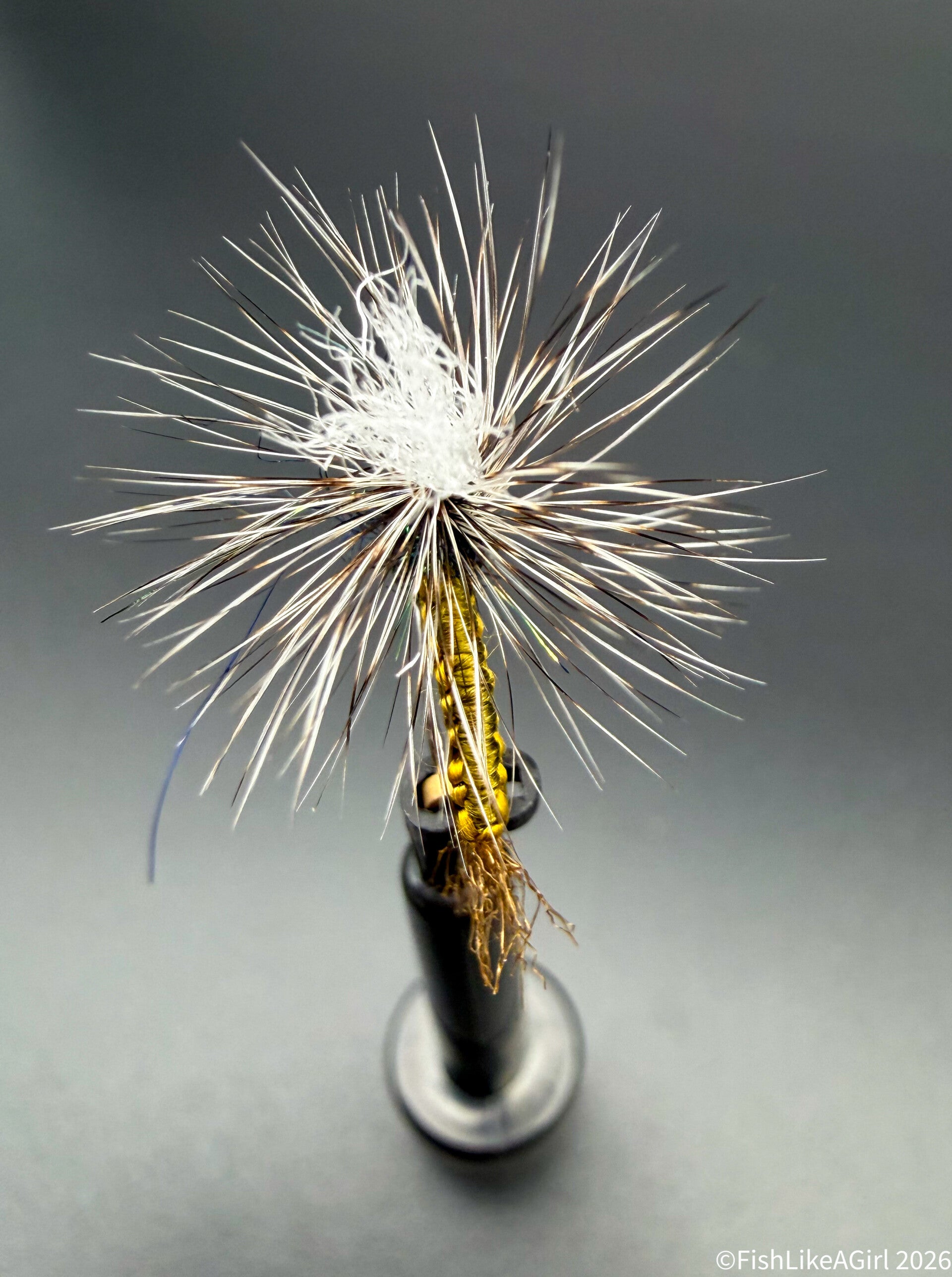 Le thorax légèrement brillant, associé à un hackle de coq et à un parachute en ZLon, positionne la mouche dans la pellicule de surface, zone de prise privilégiée des truites et des ombres.